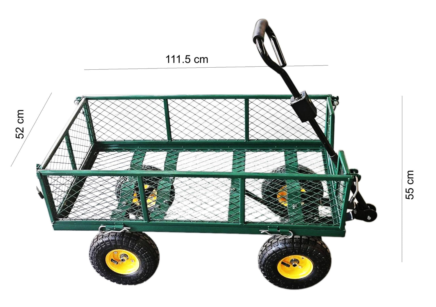 Colour: Green Material: Alloy Steel & Rubber Load Capacity: 250 kg Weight: 23 kg Dimensions: 111.5 x 52 x 55 cm (D x W x H) WHEEL:10? x 3.50-4 air, with plastic rim