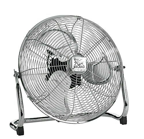 Details: Features: This heavy duty metal fan provides more air flow than standard plastic fans, drawing cooler air from the floor and circulating through the entire room keeping it cool and breezy. Put near a window/open door to expel hot stuffy indoor air and pull in fresh outdoor air. 120° Adjustable tilt to direct air flow better, hand adjustable using plastic star nuts. 3 Speed settings to control air flow, push buttons on the back. Precision made fan blades for efficient power and low-noise. Tubular Chrome steel construction (strong, lightweight and rustproof). Finger safe mesh grill to avoid injury. Thermal protection preventing the motor overheating. Rubber feet to improved stability and avoid scuffs. Lightweight and portable with carry handle. Ideal for use in a gym room, warehouse, workshop, garage and for industry. Fitted with flexible power cable and 13A UK plug. Specifications: Operating voltage: 230V, 50Hz Power rating: 100W Speed: 1350rpm Blade diameter: 18inch (45cm) Dimensions: 19.5 x 53.5 x 55 cm (D x H x W) Noise; 60db Up/down tilt: 120° Power cord length: 2m Material: Chrome steel Standards: CE, BS Plug Weight: 4.5kg