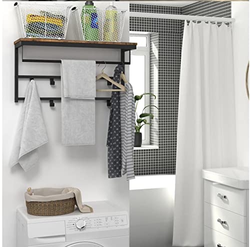 - So Simple, So Stylish: You’ll love the wood accented shelf to display decorations and the black hooks come in handy, it will be nice to hang shirts fresh out of the dryer or towels in bathroom.
