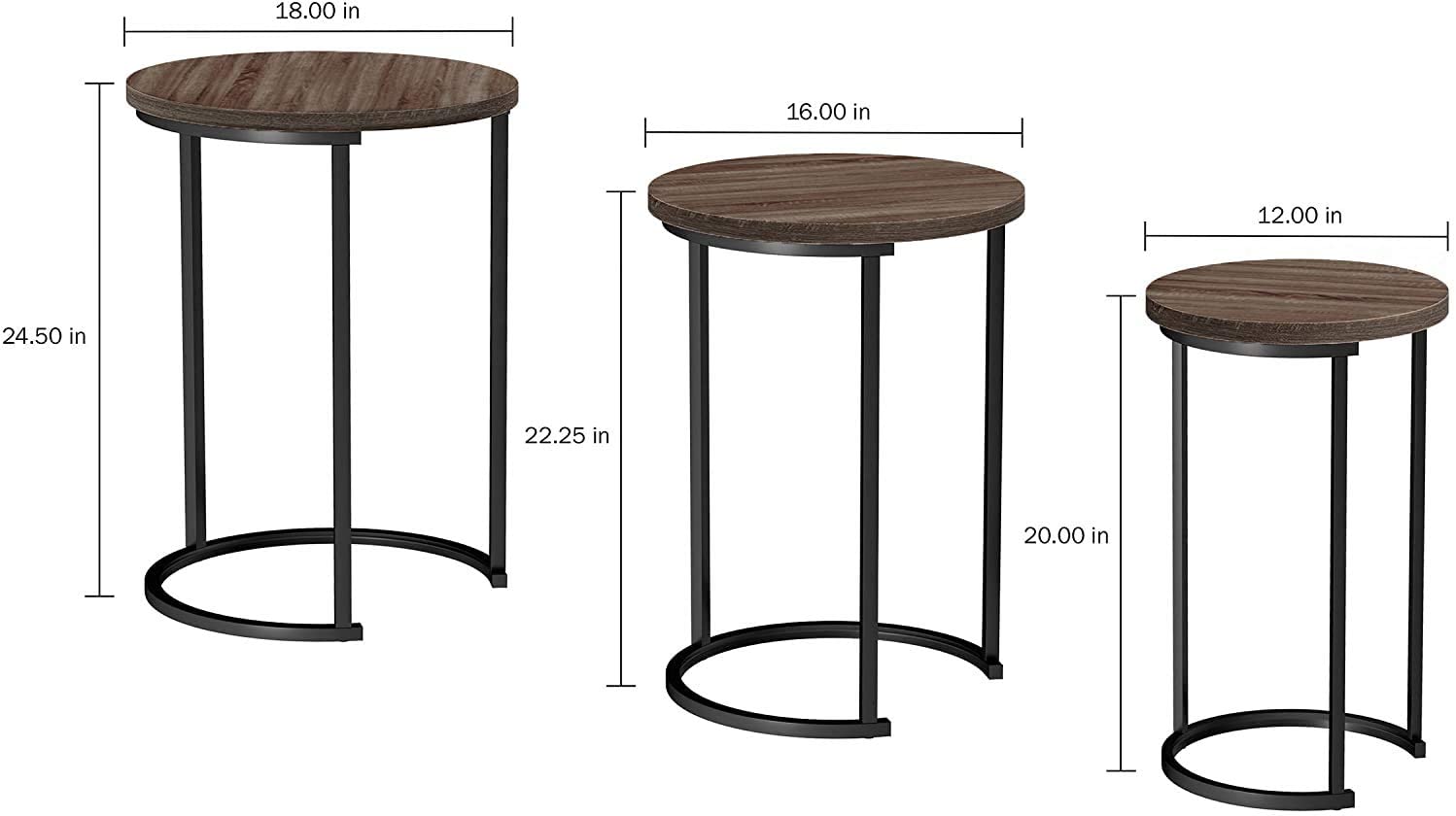 • QUALITY WITH STYLE-This set of 3 side tables are made of durable MDF wood with rounded metal legs that have a clean lined design. The tables can be kept together or used separately in different places within the room for a more consistent look.
