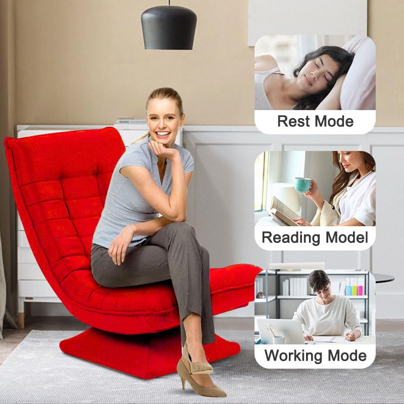 Details: PRODUCT DESCRIPTION: The large Relaxing Swivel Home Ergonomic Adjustable Backrest Lounge Chair ergonomically shaped backrest of the relaxation chair can be adjusted in 5 positions at angles of inclination of up to 120ยฐ. The soft padding is wonderfully relaxing, whether you're sitting upright or reclined. Whether for reading, watching TV, meditating or as a play chair in the children's room. This corner sofa upholstered seat adapts individually to your wishes and becomes an eye-catcher in every room with its stylish design. The soft padding is wonderfully relaxing, whether you're sitting upright or reclined. This floor chair adopts a sturdy steel frame, which has strong load-bearing capacity, is not easy to deform or break, is reliable in quality, has a long service life, and does not require installation. This floor sofa can freely adjust its position to meet all your needs for sleep, reading, and relaxation, perfectly fitting your spine and providing the best comfort. The chair can be freely rotated and adjusted 360 degrees, and when you don't want to get up and want to grab something next to you, you just need to gently turn around, which is simple and convenient.
