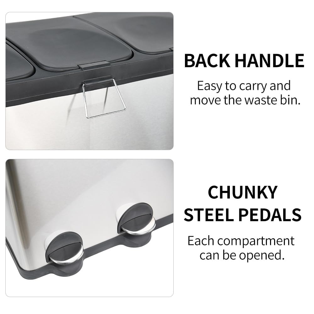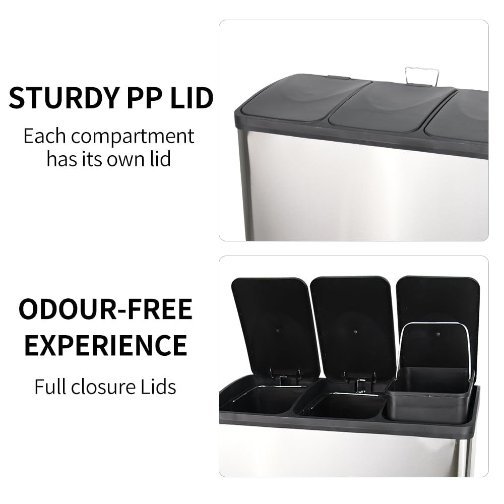 - ✔️REMOVABLE INNER BINS - Removable Inner bins - A great feature which allows you to easily remove the bins of each compartment, so you can dispose of your waste or change the bin bag. A handle on each inner bin to make things easy.