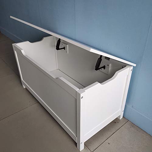 Details: Designed to last, this solid MDF wood ottoman toy chest in white finish is an elegant way to enhance storage space in your house. Its soft closing hinges on the lid makes it children safe. With handsome tongue and groove finish, this self-assemble chest is a chic yet simple design. Features: • Solid MDF wood Ottoman Toy Chest that are designed to last at an extremely affordable price • A Practical addition to any home, making a great repository for all manner of things: Toys, Books, cushions, quilts, clothes, and blankets. • Stylish and practical addition to the home, add traditional colonial charm With our Ottoman storage Toy chest, Constructed from sturdy MDF with a smooth White painted finish, this functional box provides lots of storage space. • Quick and easy assembly - Unit can easily be built by one person with the illustrated instruction manual and assembly materials. • Strong and Durable with a handsome tongue and groove finish and Safe for children to use, thanks to the safety Soft Closing hinges on the lid. • Super roomy Toy storage box so there's plenty of space for storing toys of all sizes and to cater your other storage needs. Size: • (W) 87cm (D) 42.5cm (H) 44cm